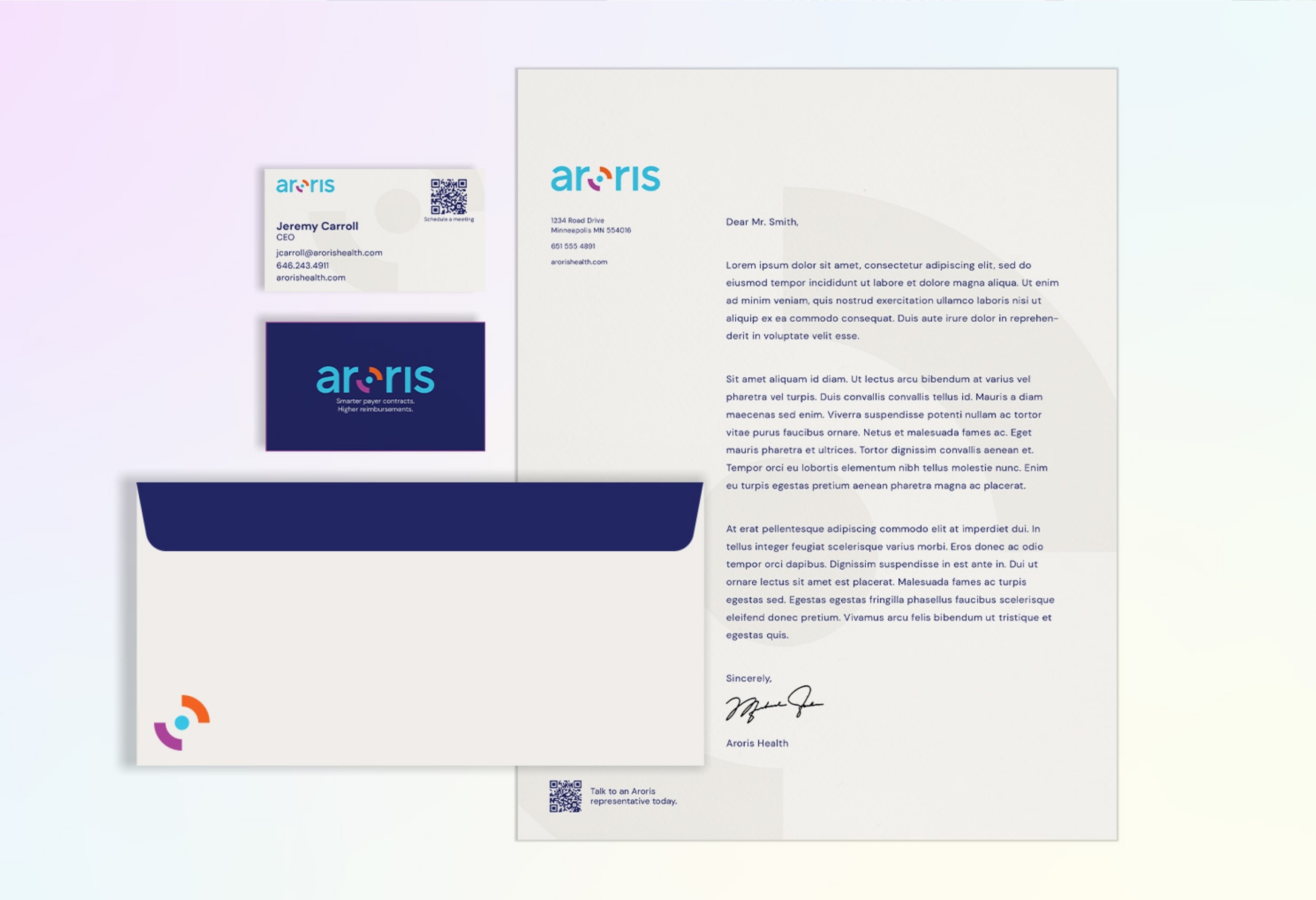 Founded in 2022, Aroris set out to restore balance between healthcare providers and payers through a proprietary contract management platform designed to ensure fair reimbursement for care. Inspired by the aurora borealis, the brand name and identity reflect the beauty of disruption and the light that emerges from complexity. The visual system introduced warmth, depth, and color into a traditionally sterile industry, positioning Aroris as both visionary and human.